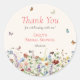 This is a colourful and bohemian thank you sticker for a bridal shower. The design features elegant and summery delicate pastel coloured wildflower florals in pretty shades of blue, terracotta, pink, rust, purple and yellow. The butterflies and bees add the finishing whimsical touch.