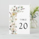 Wildflower Wedding Table Number. This elegant, whimsical wildflower wedding table number features beautiful hand-painted watercolor blush pink, dusty blue, and sage green pressed flowers with black text on a white background. Find matching items in the Wildflower Wedding Collection.