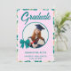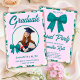 Wildflower Teal Gingham Bow Photo Graduation Invitation