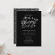Spring wedding invitation design featuring white designs and white coloured text on an black background.