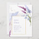 This elegant wedding collection uses a striking colour palette including periwinkle, plum and soft blues to create matching stationery and party supplies for your special day. Watercolor florals and sparkling paint strokes provide eye-catching backgrounds. Handwritten script paired with a classic serif font lend a modern touch. The wedding 'Invitation' card shown here provides a template to easily add your own event details. Search ID954 to see other pieces and colour choices for this set.