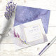 This elegant wedding collection uses a striking colour palette including periwinkle, plum and soft blues to create matching stationery and party supplies for your special day. Watercolor florals and sparkling paint strokes provide eye-catching backgrounds. Handwritten script paired with a classic serif font lend a modern touch. The wedding 'RSVP' card shown here provides a template to easily add your own request wording. Search ID954 to see other pieces and colour choices for this set.