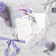 This elegant wedding collection uses a striking colour palette including periwinkle, plum and soft blues to create matching stationery and party supplies for your special day. Watercolor florals and sparkling paint strokes provide eye-catching backgrounds. Handwritten script paired with a classic serif font lend a modern touch. The wedding 'Rehearsal Dinner' invitation shown here provides a template to easily add your own event details. Search ID954 to see other pieces and colour choices for this set.