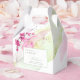 This elegant wedding collection uses a striking colour palette, including fuchsia fedora, lime green and cotton candy pink, to create matching stationery and party supplies for your special day. Watercolor florals and sparkling paint strokes provide eye-catching backgrounds. Handwritten script paired with a classic serif font lend a modern touch. The wedding favour box shown here provides a template to easily add your own names and thank you message. Search ID954 to see other pieces and colour choices for this set.