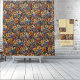 Imagine stepping into a bathroom that feels like a lush floral paradise! This shower curtain features a mesmerising botanical pattern bursting with vibrant blossoms in shades of orange, yellow, blue, and burgundy, all intertwined with flowing green foliage. The intricate design has a hand-drawn, almost painterly quality, giving it a rich, artistic depth that transforms your space into a blooming work of art.