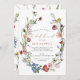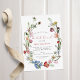 A delightful floral bridal brunch invitation featuring a watercolor horse shoe wreath of colourful wildflowers. "bridal brunch" is in dark red modern calligraphy style font.