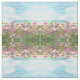 A dream garden is to be surrounded by cosmos and wildflowers on a sunny summer day with fluffy clouds in the blue sky, including a wildflower garden bedding print