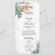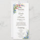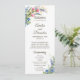 Wildflowers and Blueberry Rustic Wedding Program. Romantic style with blueberries, lavender flowers, clover, and eucalyptus is perfect for a rustic summer wedding. The basis of the composition is a wreath of wildflowers and a wood circle. Watercolor splatter complements the composition of flowers and berries and gives it a special charm.