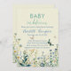 Invite friends and family to celebrate the arrival of a sweet baby with this elegant spring wildflower baby shower invitation, featuring watercolor wildflowers in hues of twilight blues and verdant green.