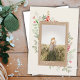 Wildflower botanical design around cardstock inspired rectangle with white text and your custom photo. Off white background.