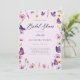 An elegant boho bridal shower invitation featuring wildflowers (cosmos and other common wildflowers and grasses) in watercolor, purple and pink butterflies with gold sprinkles (these are digital effects, not real foil or glitter!) and modern calligraphy, with a pink wildflower on the back. Elegant and chic, it is the perfect invitation for a backyard garden bridal lunch, brunch or party, or for any bride who loves wildflowers, butterflies and rustic, country designs with a touch of romantic boho.
