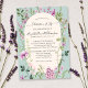 Elegant and feminine celebration of life memorial service invitation with watercolor painted wildflowers in pink, purple and green.