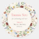 This is an elegant and summery round thank you sticker. The design features a colourful and summery halo of delicate wildflower florals in pretty shades of blue, terracotta, pink, rust, purple and yellow. The butterflies and bees add the finishing whimsical and pretty touch.