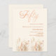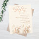 An elegant 50th birthday invitation. A cream, beige coloured background decorated with watercolored wildflowers in beige, pink, dusty green. Fifty is written with a large hand lettered style script.