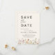 This elegant boho save the date minimalist wildflower invitation is the perfect way to announce your upcoming nuptials in a stylish and affordable way. The invitation features a simple design with a wildflower and a modern font. The invitation is customisable with your own text and details, making it the perfect way to personalise your save the date.