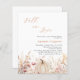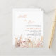 An elegant Fall in Love Bridal Shower invitation. A white background. Decorated with watercolored wildflowers in beige, pink and a pumpkin.
