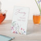 It is sturdy than I expected. Was worried about the material being flimsy but it is not. It is printed on some sort of plastic material. It should serve well at our wedding as long as wind isn’t too bad. Otherwise we will put some paper weights behind it and should be fine.