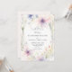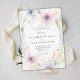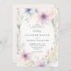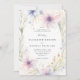 Delicate wildflowers and lush greenery, painted in soft watercolor with tones of purple, lavender, pink and green, intertwine gracefully against an ivory white background to create an elegant floral frame for this wedding invitation. The design is a timeless blend of classic sophistication and the playful charm of wildflowers, perfect for the modern romantic. Ideal for a spring or summer wedding, this invitation suits both the elegant boho bride and those planning a garden fête, backyard celebration, or a formal event in a château's gardens. A beautiful choice for brides who seek a touch of nature's whimsy with refined elegance.
