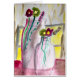 Art frpm an original watercolor painting of colourful wildflowers in a glass vase in simple abstract line art. Simple and unique whimsical art.