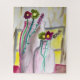 Art frpm an original watercolor painting of colourful wildflowers in a glass vase in simple abstract line art. Simple and unique whimsical art.