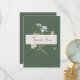 Announce your wedding with a touch of rustic elegance. Our captivating wedding thank you card suite features a vibrant arrangement of wildflowers and ferns, meticulously hand-drawn and reminiscent of pressed botanical treasures. Rich colours like tan, yellow, cream, blue, and sage green stand out beautifully against a soft sage green background frame. Your wedding details are showcased in a crisp cream text box, ensuring clarity and elegance. This captivating design captures the essence of a wildflower meadow, offering a unique and memorable way to celebrate your love story.