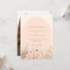 An elegant wedding invitation. A cream, beige coloured background and a peach coloured arch. Decorated with watercolored wildflowers in beige, pink.