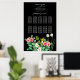 A beautiful watercolor wildflower and Periwinkle wedding design. A unique design that uses rustic vintage botanical floral. An elegant black retro floral design with a dash of greenery. A wildflower and Periwinkle wedding seating chart design with modern elements. Matching wedding invitations and other stationery items are also available.