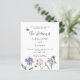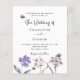 A white background. Decorated with bees and painted wildflowers in violet and pink. Personalise and add your names and the details.