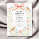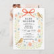 Celebrate the mum-to-be with this sweet and whimsical baby shower invitation, perfect for a spring or garden-themed celebration. The design features a delicate watercolor floral arch of soft peach and blue wildflowers, accented by two charming birds and a hand-painted coral bow at the top. The text is set in a classic serif font, offering a timeless and elegant feel. This invitation captures the gentle joy of welcoming a little one, making it an ideal choice for a warm, nature-inspired gathering. Personalise yours today to create a keepsake as special as the occasion!
