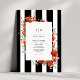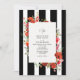 Wildflowers Red Floral Black White Stripe Wedding Invitation