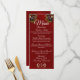 The front features wildflower bouquets in beautiful summer colours on a red background with the menu details and linked leaf monogram. The back has a placeholder for the linked leaf monogram also. Changing the fonts can create more elegant or rustic look. Available in several colours for your wedding theme. Designed to coordinate with Rustic Wildflowers & Ribbon Collection. To change details, click «Personalise». To move the text or change the text size, font, or colour click «Click to customise further»