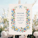 Wildflowers Rustic Blue Bow Wedding Welcome Poster