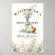 PERSONALIZED BRIDAL SHOWER VERTICAL WELCOME SIGN | Romantic Elegant rustic BOHO bridal shower theme with orange mini pumpkin, autumn wildflower blooms and leaf foliage beginning to turn colour. Graphically designed by internationally licensed artist and designer, Audrey Jeanne Roberts © msp0113