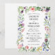 Elegant wildflowers white wedding invitation with a mix of a script and formal font. The design features pretty flowers, green leaves, and butterflies. Personalise the back with the couple's initials or leave it blank. Ideal for a floral or greenery spring or summer wedding.