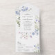This trendy Wedding invitations features watercolor light blue and violet, pale pink wildflowers, greenery