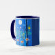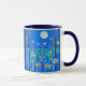 Coffee mug in a fantasy scene of wildflowers in the forest, under the full moon, in evening blue and turquoise