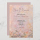 Wildflowers Watercolor Floral Wedding Invitation designed on a background of pastel coloured wildflowers in shades of soft pink, purple, green and yellow. The front text includes: the Bride and Groom's Names, the Wedding Date, Time, and Location. The reverse side is a matching soft purple background. To personalise, simply insert your details into our easy template, replacing the sample text.