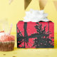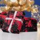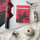 An abstract art design of black wildflowers silhouetted against a red sky.