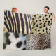 Wildlife Animal Print Throw Blanket with Zebra stripes Cheetah Leopard spots exotic animal throw rug faux design no animals were injured in this design. Just animal prints montage in a beige, brown, tan and black colour montage design throw rug for comfort, style and warm rustic colours for the animal lover at heart.