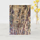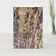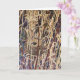 A bird's nest situated among dense, tall reeds with varied shades of brown, yellow, and green surrounding it. The background features a mix of earthy tones and dark shades, lending a camouflage effect to the nest. Use for Empty Nest, Easter and New Home greetings. Send one to a nature lover. Inside: blank