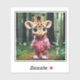 Meet our adorable giraffe baby, dressed in vibrant, beautifully patterned clothing, with a charming little bag slung over his back. Set against the lush backdrop of a whimsical forest, this delightful design captures the spirit of curiosity and adventure. Perfect for adding a touch of playfulness to any space.