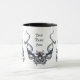 Repeating pattern with white dragons entwined around mug with the center dragons further apart so you can add your own name.
