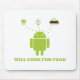 Are you willing to code for food? If you're just starting out, you might. Showcase your wry software engineer / software developer sense of humour with a dose of Android attitude with any of these Android robot (bug droid) gifts along with the caption "Will Code For Food". Includes Android peeking out of a cupcake, doughnut, and eclair -- from just a couple of years ago. Memorable software developer humour gifts for all who work with Android open source code! Note: Portions of this page are modifications based on work (http://www.android.com/branding.html) created and shared by Google and used according to terms described in the Creative Commons 3.0 Attribution License (http://creativecommons.org/licenses/by/3.0/).