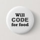 Will Code for Food button. Who doesn't love computer geek humour? Buy this funny button for yourself or as a gift for that special computer programmer in your life!