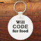 Will Code for Food keychain. Who doesn't love computer geek humour? Buy this funny keychain for yourself or as a gift for that special computer programmer in your life!