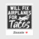 Will Fix Aeroplanes For Tacos - This Aeroplane Aircraft Mechanic Design for Men is also great for your coworker or friend who is an aviation enthusiast and fix aeroplanes.