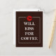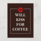 Will Kiss for Coffee Gift Original Design Java Fun Postcard