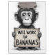 Will Work for Bananas - Humorous Monkey Sketch Clipboard