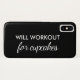 This fun black and white, iPhone case is decorated with the cute quote, Will Workout for Cupcakes, making it the envy of the gym and perfect for your next workout.