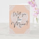 This card says Will you be Mine? on the front along with a romantic lace heart design on a peachy pink background. The inside features a customisable greeting that asks, “Will you make me the happiest person and be my Valentine?”
